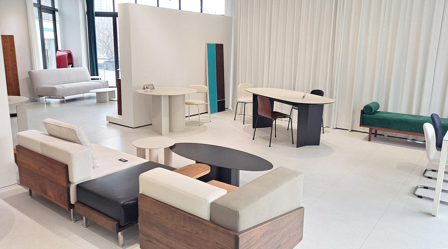 쇼룸 The QUAD & Ludvi 에서 대표적인 쿼드의 원목가구와 루드비 디자인 가구를 비롯해
